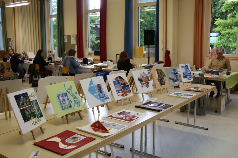 Atelier de scrap avec outil et thème libre. Chacune avance à son rythme en bénéficiant de d’aide et de conseils.